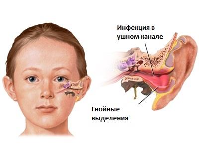 - Распространение инфекции на соседние с ухом области, включая кости черепа.