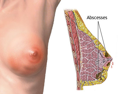 A breast infection (mastitis) causes aching muscles, fever, and a red, hot, tender area on one breast. Call your health care provider if you develop these symptoms.