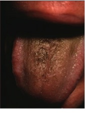 Hairy tongue, also known as black tongue, is a benign condition of elongation and staining of the fingerlike projections (papillae) on the tongue surface. This condition may be caused by overgrowth of a bacteria or yeast that produces a colored substance (pigment). Anything that reduces the flow of saliva in the mouth, such as dehydration or illness, or if the person is not eating a normal diet, can lead to the condition, which typically develops over a few weeks. Medications that commonly cause hairy tongue include antibiotics, anti-psychotics, anti-depressants, and anti-cholinergic agents. Other causes include smoking, alcohol, the use of mouthwashes, and exposure to radiation therapy.