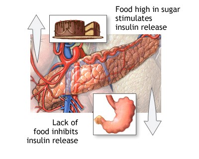 Most of the time when your blood sugar level drops too low, the pancreas stops making insulin until your blood sugar returns to normal. Tumors of the pancreas that produce too much insulin are called insulinomas. Insulinomas keep making insulin, even when your blood sugar drops too low.