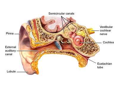 The inner ear contains fluid-filled tubes called semicircular canals, or labyrinths. These canals, along with a nerve in your skull, help interpret your body's position and maintain your balance.