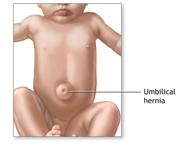 Umbilical hernias are common in infants. They occur slightly more often in African Americans. Most umbilical hernias are not related to disease. Some umbilical hernias are linked with rare conditions such as Down syndrome.