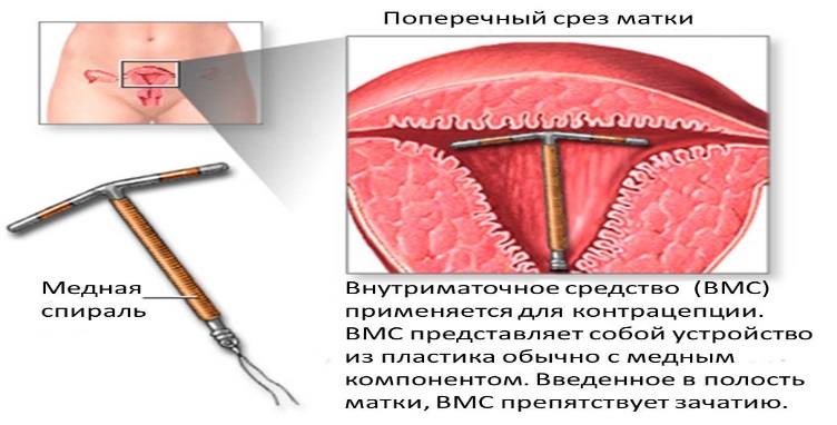 - ВМС является небольшим пластиковым или медным приспособлением, которое размещается внутри матки женщины ее гинекологом. Некоторые ВМС выпускают небольшие количества прогестерона. ВМС может быть оставлена на месте в течение 5 - 10 лет, в зависимости от используемого вида ВМС.
