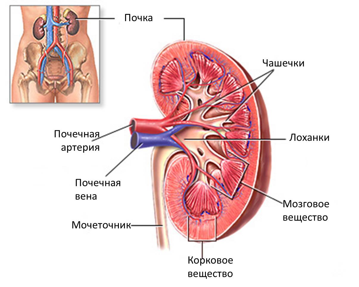 Мочевыделительная система состоит из почек, мочеточников, уретры и мочевого пузыря.