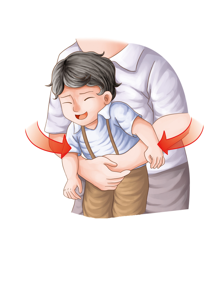 Расположите другую руку и предплечье по передней поверхности его тела. Ребенок должен оказаться зажатым между предплечьями.