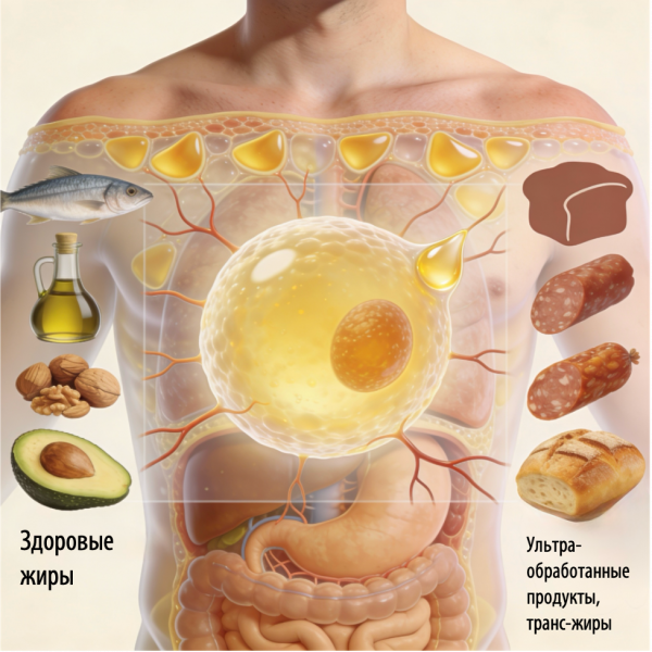 О жирах в питании говорят постоянно — и почти всегда в эмоциональных категориях. В общественном сознании жир нередко становится символом «вредного», «опасного» и «лишнего». Однако профессиональный взгляд требует более точной оптики: жиры — это не только калории и не только фактор риска. Они являются фундаментальной частью обмена веществ, незаменимым компонентом пищи и одновременно основой важнейшей системы хранения энергии. Более того, телесный жир — это не просто «запас», а физиологический орган, от состояния которого напрямую зависит метаболическое здоровье человека.